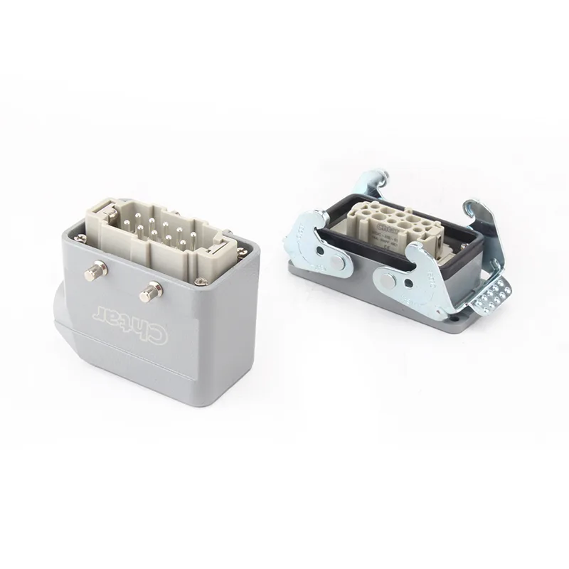 ตัวเชื่อมต่อ CHTAR 10 Pin AG Heavy Duty นี้ได้รับการออกแบบบนหลักการแบบโมดูลาร์ ประกอบด้วยตัวเรือนซ็อกเก็ตตัวเมีย ซึ่งสามารถรองรับการกำหนดค่าเม็ดมีดที่หลากหลายด้วยหน้าสัมผัสตัวเมียหรือตัวผู้ 10 หมายเลข ทำจากคันโยกล็อคสองชั้นเพื่อป้องกันขั้วต่อด้านใน