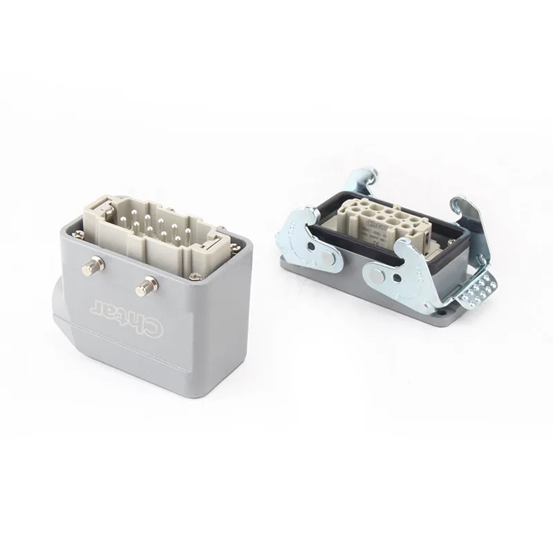 ตัวเชื่อมต่อ CHTAR 10 Pin TS Heavy Duty นี้ใช้กันอย่างแพร่หลายกับ HE HD HEE, HDD เป็นส่วนที่อยู่อาศัยฐานและตัวเมียของตัวเชื่อมต่อสำหรับงานหนัก ทำจากอะลูมิเนียมและออกแบบให้เป็นหัวเข็มขัดเดี่ยว เทอร์มินอลบล็อคสำหรับงานหนักประเภทที่ใช้งานง่าย