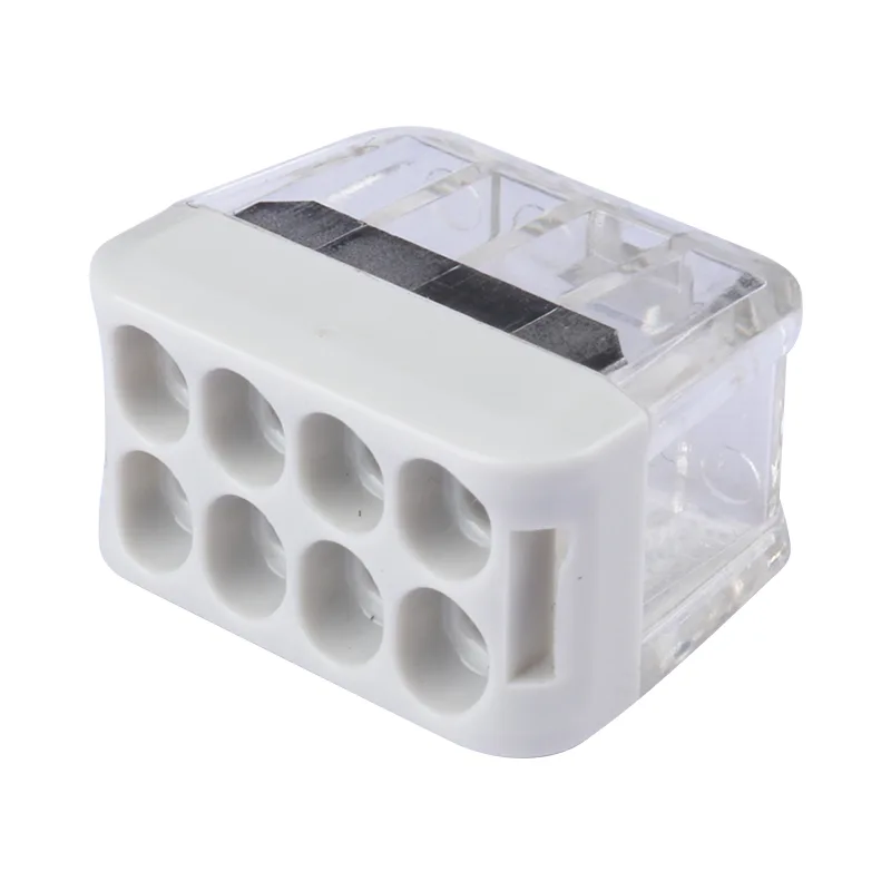 CHTAR 2P 3P 4P 5P 6P 8P ตัวเชื่อมต่อด่วนแบบป้อนผ่านลวดแบบไม่มีคันโยกทำจากวัสดุตัวเรือน PC เกรด UL94 V0 สื่อกระแสไฟฟ้าทำจากทองแดง T2 พร้อมชุบดีบุกและสปริงทำจาก S301 สามารถเชื่อมต่อกับสายไฟแข็งขนาด 0.5-2.5 มม. ได้โดยให้จำนวนรูที่แตกต่างกันสำหรับการเลือกปริมาณสายไฟที่แตกต่างกัน สามารถต่อเชื่อมได้ดีตั้งแต่ 2 สาย ถึง 8 สาย . เราสามารถสร้างสีหรือที่อยู่อาศัยที่แตกต่างกันเพื่อให้ลูกค้าเลือกได้