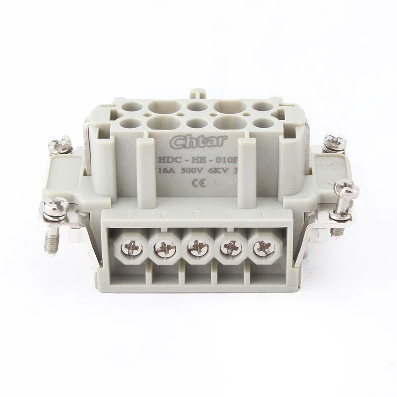 CHTAR's durable M/F 10 Pin Insert Heavy Duty Connector is used in conjunction with the H10B housing of the heavy-duty connector. It has 10 pins and is connected by 10 wires. They are made of high-strength PC and have brass silver plated pins inside. We look forward to becoming your trusted long-term partner in China.