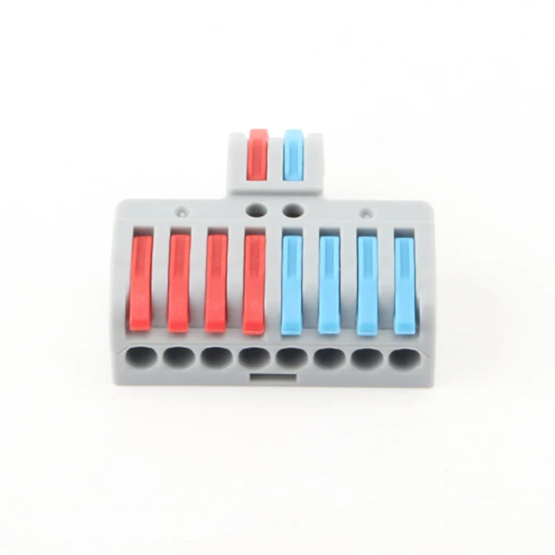 ตัวเชื่อมต่อด่วนแบบ Multi-in Multi Out Splicing Wire คุณภาพสูงของ CHTAR นี้เป็นตัวเชื่อมต่อที่มีโครงสร้างแบบหลายเข้าและหลายออก เชื่อมต่อสายไฟตั้งแต่ 0.2 มม.² ถึง 4 มม.² สามารถทำงานได้ที่กระแสไฟพิกัด 32A ผลิตภัณฑ์ซีรีส์นี้ตระหนักถึงวิธีการเชื่อมต่อของสาขาหลายสายภายในระยะ 4 ตารางมิลลิเมตร นำโครงสร้างสาขาต่างๆ ไปใช้ เช่น 1 แบ่งออกเป็น 2, 2 แบ่งออกเป็น 4 และ 3 แบ่งออกเป็น 6 เส้นแต่ละกลุ่มไม่เชื่อมต่อถึงกัน