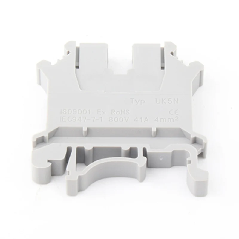 UK 5N Din Rail Terminal Block เป็นตัวอย่างที่สมบูรณ์แบบ ออกแบบมาสำหรับตัวนำที่มีขนาดไม่เกิน 4 มม.² แคลมป์แบบสกรูช่วยให้มั่นใจได้ถึงการเชื่อมต่อที่ปลอดภัยทางกายภาพและเสียงทางไฟฟ้า ซึ่งมีความสำคัญอย่างยิ่งต่อความสมบูรณ์ของสัญญาณและการจ่ายพลังงานในสภาพแวดล้อมที่ต้องการ